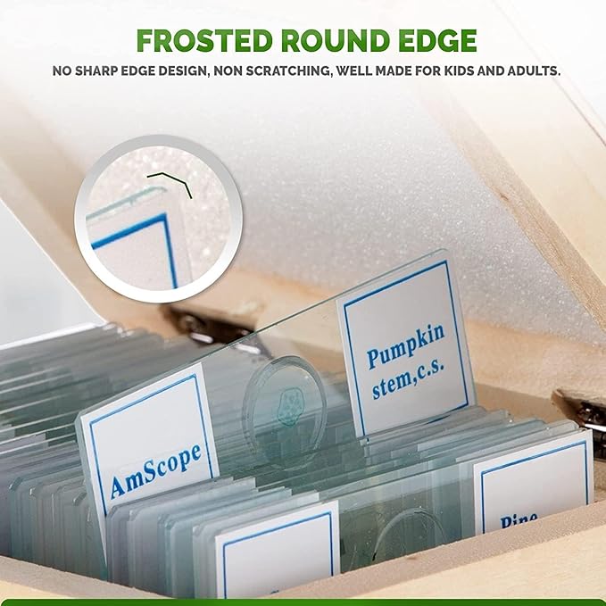 AmScope PS25W Prepared Microscope Slide Set for Basic Biological Science Education, 25 Slides, Includes Fitted Wooden Case