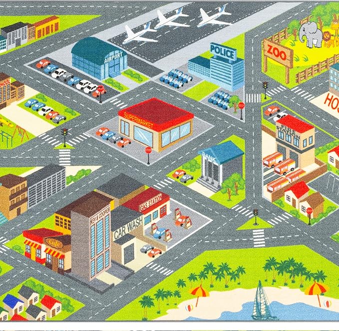 - TAKE YOUR IMAGINATION FOR A RIDE: Designed for interactive fun, this updated take on the classic play rug lets kids drive their toys through a vibrant city layout. Perfect for solo play or sharing with friends.