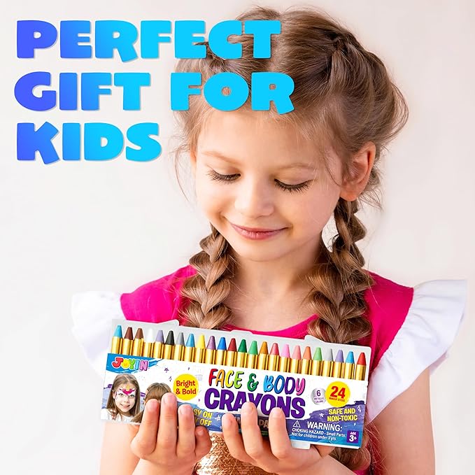 JOYIN 24 Colors Face Paint Safe & Non-Toxic Face and Body Crayons (Large Size 3 inch) Ultimate Party Pack Including 6 Metallic Colors for Birthday Toy Makeup Party Suppiles, Gifts for Kids Girls Boys