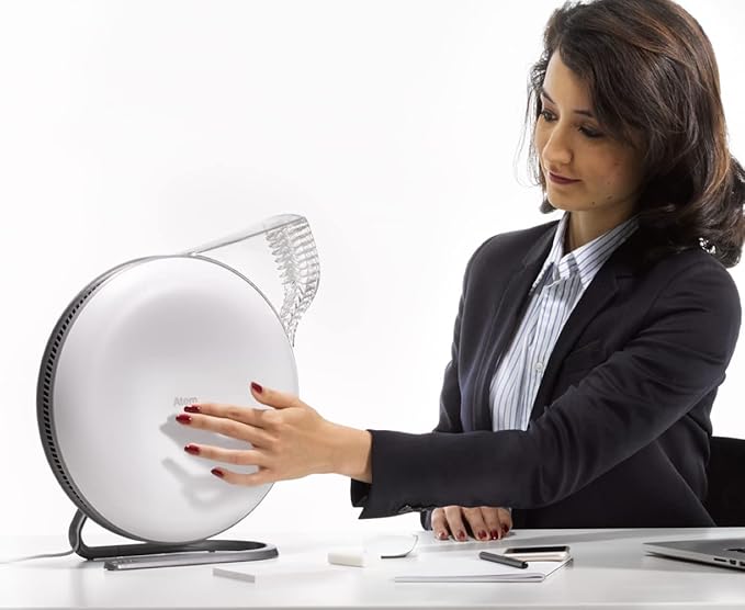 - HYPERHEPA FILTRATION: Atemโs portable air cleaner fans pull mold, pollen, dust, smoke, allergens, pet dander, asthma triggers, and even ultra-fine biocontaminants from the air and creates a zone of safe filtered air around you. Breathe easy all day long.