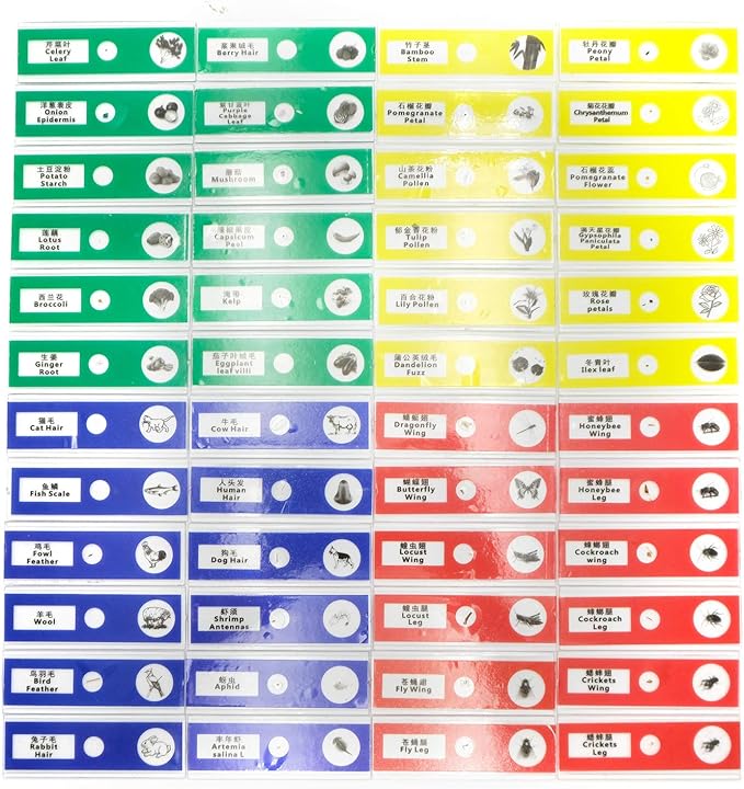 48pcs Prepared Plastic Microscope Slides Biological Specimen with 4 Boxes for Children Student Enlighten Education