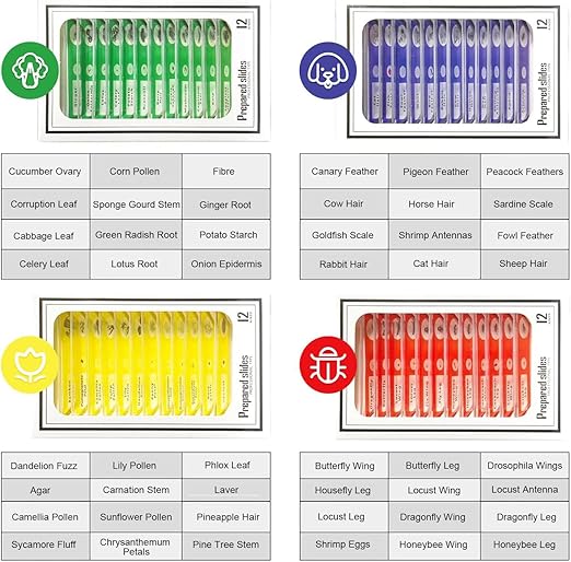 - 【Gift Idea】- This collection of microscope slides, beautifully packaged, makes for an excellent gift for young family members venturing into biological research and embarking on a close-up course.