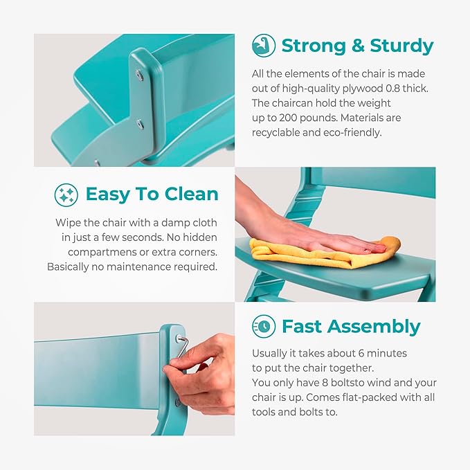 FORNEL Modern Wooden High Chair in Turquoise | The Adjustable Grow-with-Me Chair with a Stylish Pop of Color for Your Kitchen & Dining Room