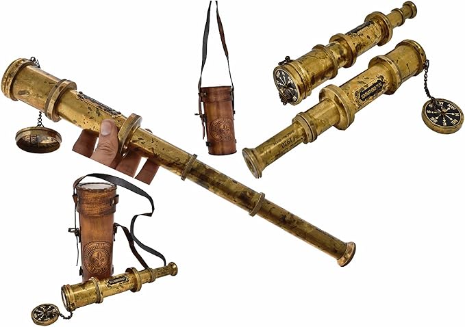 - Gift Idea : 18" Opened Telescope for Adults pirate spyglass scope. Brass Telescope with leather case, Pirate Lover's Antique gift Scope For using on boats, hiking trips, bird watching and gifting. Christmas, New Year, Occasion, Business Gift