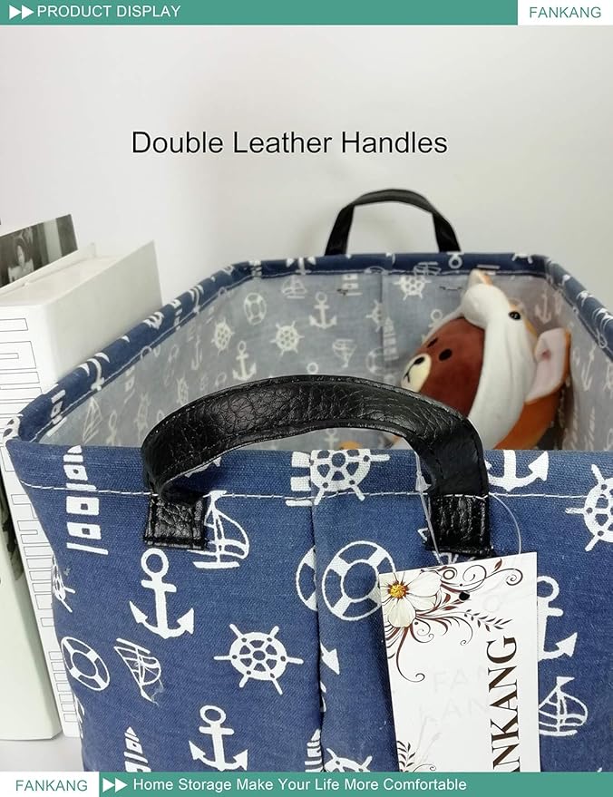 FANKANG Storage Basket,Nursery Hamper Canvas Laundry Basket Foldable with Waterproof PE Coating Storage, Office, Bedroom, Clothes,Toys (Rec-Sailboat)