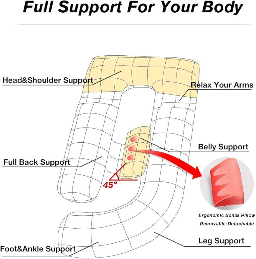 - Adults of all ages and sizes will benefit from our cozy cushion designed to embrace your total body while sleeping on your side, back or stomach