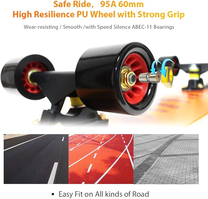 - 【EASY TO STOP】 When you want stop , just put one of your foot on the ground to stop it. Or you can lean your body to reverse direction to slow down the speed then stop your skateboard.