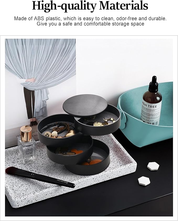 - ♥【Rotating Jewelry Organizer】- Simple and modern style, rotate into any look you like, excellent dressing table decor; it's a compact cylinder when closed, and isolate dust to better maintain the luster of jewelry.