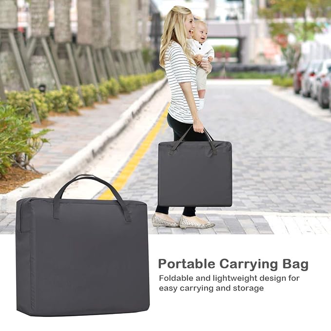 - Portable and Foldable Design: No need to assemble, our travel crib is ready to go out of the box. And you can quickly fold it in the carrying bag without any extra tools. The compact design and light weight allow you to put it in the trunk of your car and bring it to trains and planes as you travel.