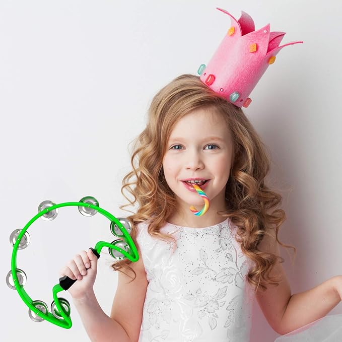EastRock Tambourine,Metal Jingles Hand Held Percussion-Half Moon Tambourine for Kids, Adults, KTV, Party GREEN