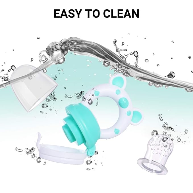 - EASY TO CLEAN AND STORAGE - Hygiene and safety are our topmost priority. Our mesh fresh food feeder has no irremovable components and can be fully dismantled for washing and cleaning purposes, The food grade silicone is stain resistant and won't spot or stain like similar mesh bag products. The design of food teether with light weight and small size, which could save more space