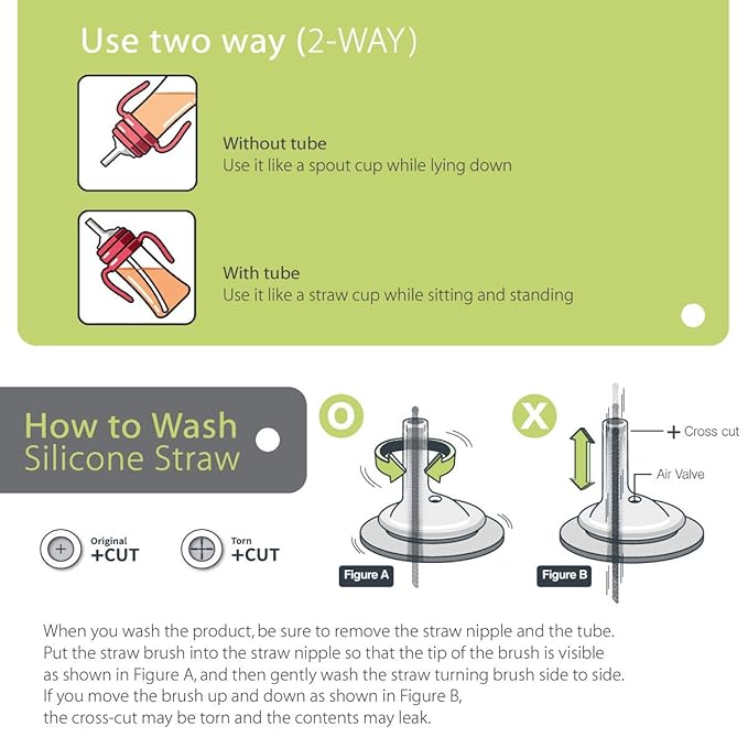 - USE 2-WAY : Without tube you can use it like a spout cup while lying down. With tube you can use it like a straw cup while sitting or standing