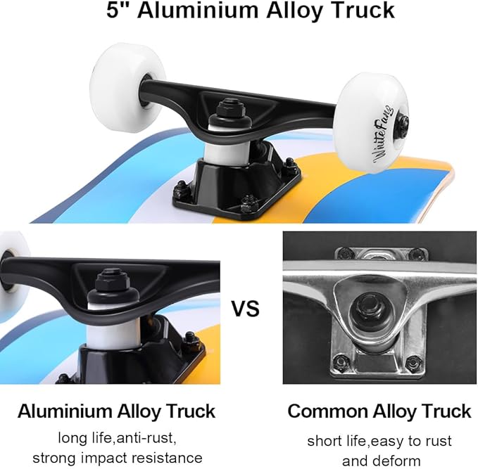 - ๐น We Don't Skimp on Materials: Our skateboard made of waterproof and fastness heat transfer printing pattern design, it can keep luster long time. High density non-slip emery griptape makes you safer during skateboarding.