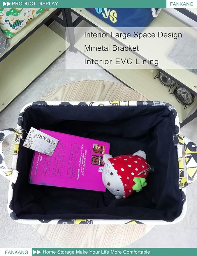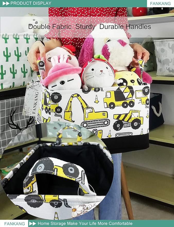 - Easy to carry: The lightweight canvas storage bins with handles allow you to carry your load easier. Wire-rimmed edges add form and stability. Help your kids clean up their act with our cute storage bins.