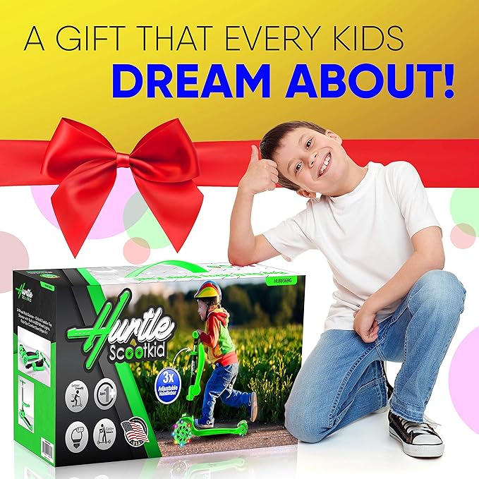 Hurtle 3-Wheeled Scooter for Kids - Wheel LED Lights, Adjustable Lean-to-Steer Handlebar, and Foldable Seat - Sit or Stand Ride with Brake for Boys and Girls Ages 1-14 Years Old
