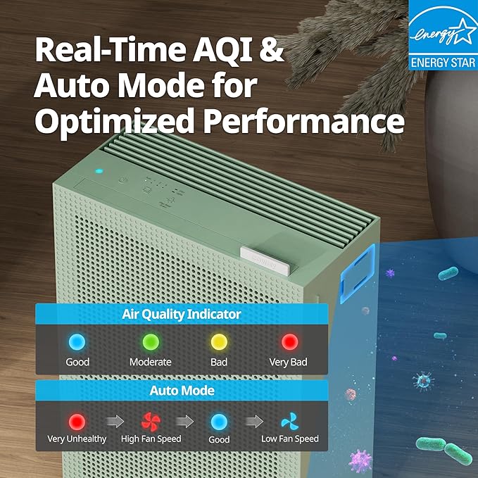 - [Auto Mode] Constantly monitoring the air quality, the fan automatically adjusts to most effectively purify your space as needed providing a new level of clean in real time.