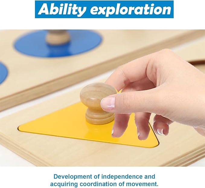 Adena Montessori Colorful Multiple Shape Puzzles Toys for 6-12 Months 1 Year Old Toddler Babies First Shapes Geometric Jumbo Knob Wooden Puzzle Color Sorter (3 Pieces)