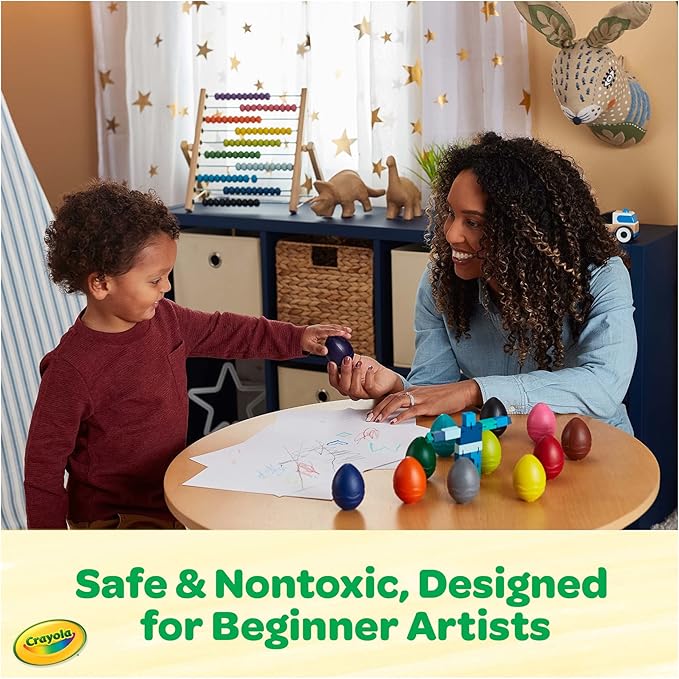- CRAYOLA TODDLER CRAYONS: Features 12 large Palm Grasp Egg Shaped Crayons for toddlers.