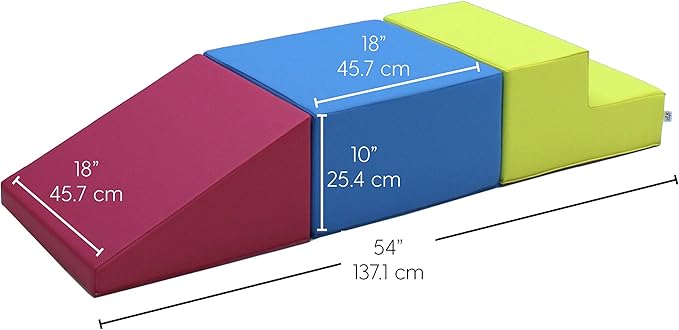 - PRODUCT SPECIFICATIONS: recommended for kids 10 months to 3 years, adult supervision required; assembled climber measures 54" L x 18" W x 10" H; light assembly required
