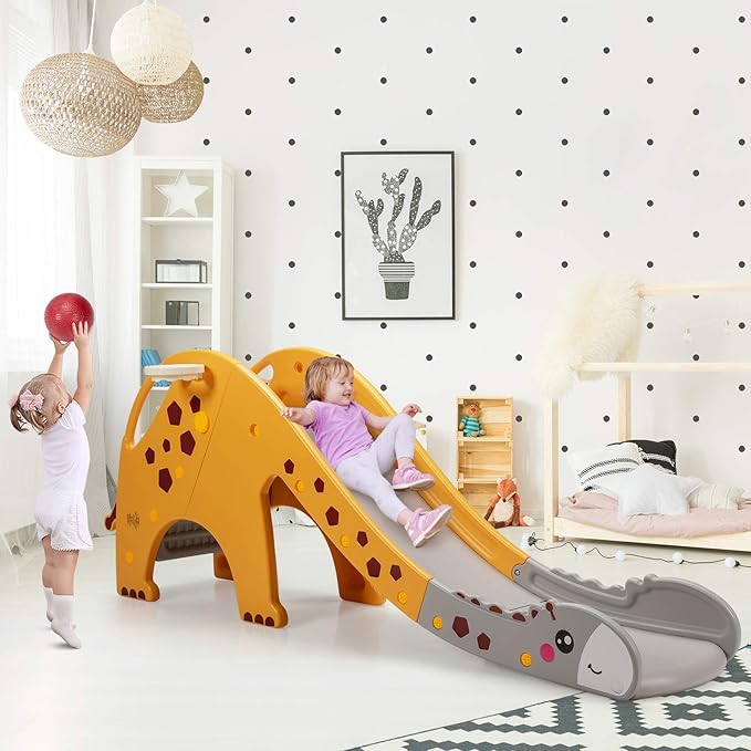 - 【Best Gift to Stimulate Kids' Potential】Let your baby create and experience fun childhood! Slides are the initial experience for babies to feel "speed". Different lengths and gradients of slides provide different speed experiences for babies. Most babies' initial experience of speed comes from playing on slides. During the process of sliding, kids need to master their own balance and rotation speed, which exercises their body coordination abilities.