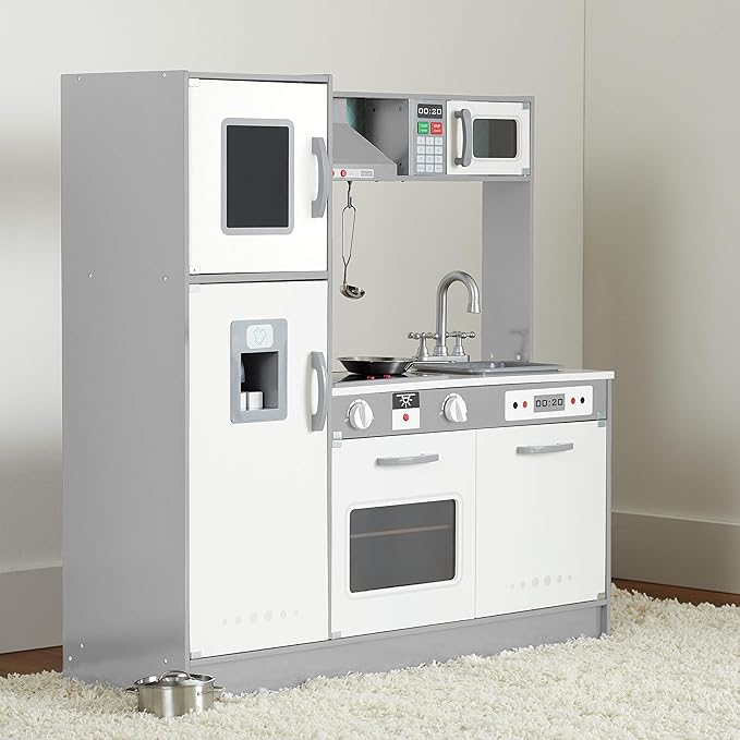 Amazon Basics Kids Kitchen Set, Play Kitchen Toy Playset for Toddlers, Preschoolers, 39"L x 11.8"W x 39"H, White & Gray
