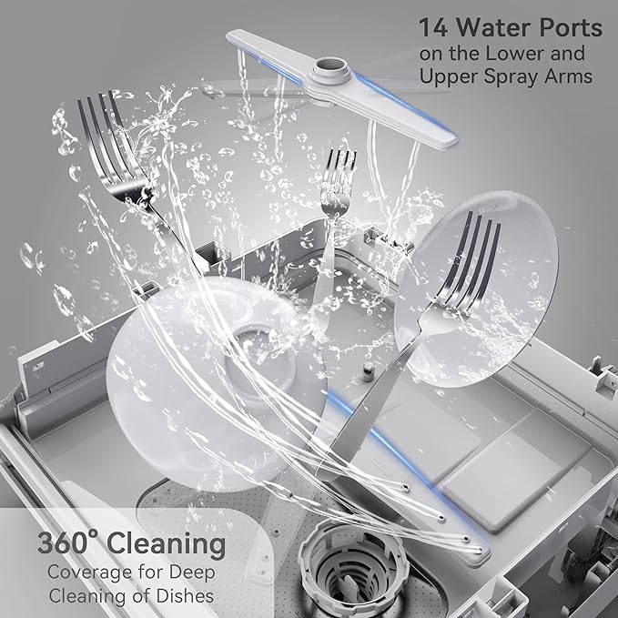 - 【HIGH TEMPERATURE】Dishwashers can clean tableware, fruits and vegetables, and also use the drying function after cleaning to keep tableware dry and tasteless. 167℉ High Temperature and PTC Hot Wind are suitable for baby products and oily tableware to give glassware a sparkling clean finish.