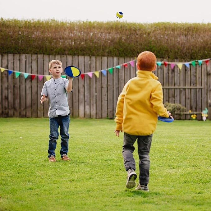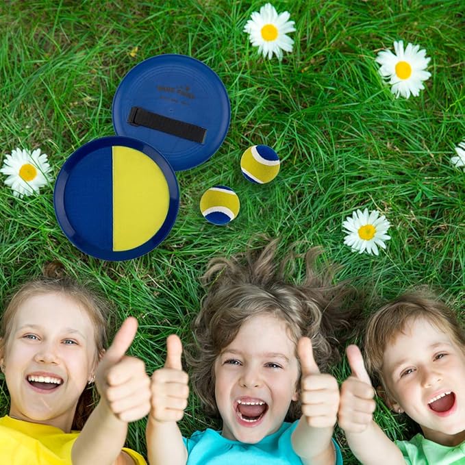 - 【Softer and High-quality Ball Set】The old version's tennis balls were very hard and lacked elasticity, making them difficult for kids to catch. Our balls are much stronger and softer, yet still have great stickiness, so kids can easily catch them and enjoy a comfortable feel. Kids won't lose their fun because they can keep catching the ball. This ball game is always lots of fun for little ones, even at family reunions.