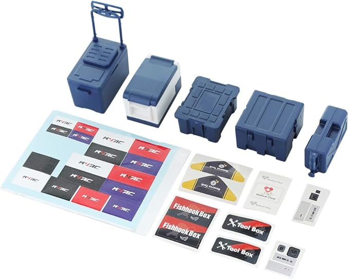 5PCS Plastic RC Mini Tool Set/Fishing Box/Medical Chest/Refrigerator/Fuel Tank/Tool Case Compatible with traxxas TRX4 Axial SCX10 1/10 1/8 RC Crawler Climbing Car Simulation Decoration(Blue)
