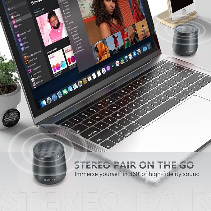 - 【Small But Mighty Powerful Mini Speaker】 This micro travel waterproof speaker packs a far more powerful punch than its small size would suggest. It adopts a 5W full-range speaker and a hidden passive radiator on the bottom to deliver surprisingly rich audio and clear sound. Wireless computer speaker without cable hassle for pc laptop, tablet, and smartphone. One of the best gift ideas.