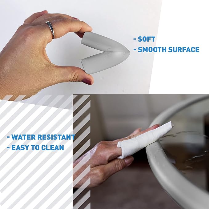 Baby Proof Corners 20.4ft and Edges with Furniture Corner & Edge Safety Bumpers, Impact-Absorbent 18ft Bumper & 8 Foam Corner Protectors, Thick, Odorless Table Edge Protectors for Baby | Grey
