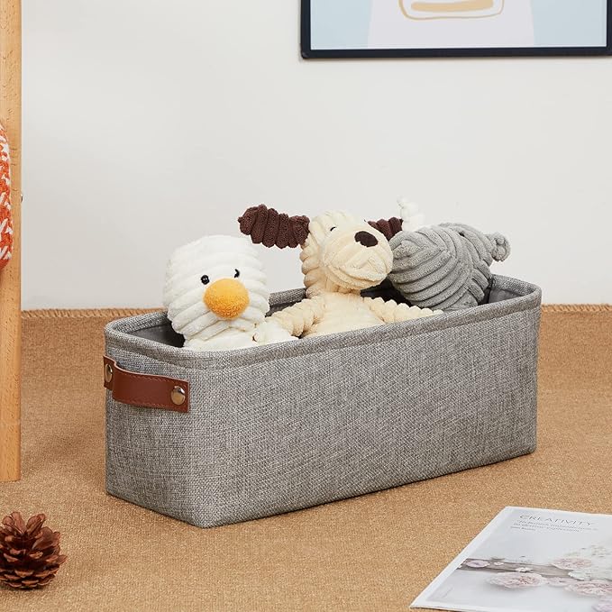 - 【Unique Design & Modern & Decorative】Set of 2 small toilet paper baskets, dimensions(each): 15(L) x 6(W) x 5.5(H) inches. Fabric storage baskets bring you organizing convenience and a sweet home. Great for socks, underwear, books, magazines, toys, pet products, wipes, towels, decorations, office supplies, DVDs, and gifts. The fabric baskets with neutral colors can match a lot of home styles - keeping your home nice and tidy.