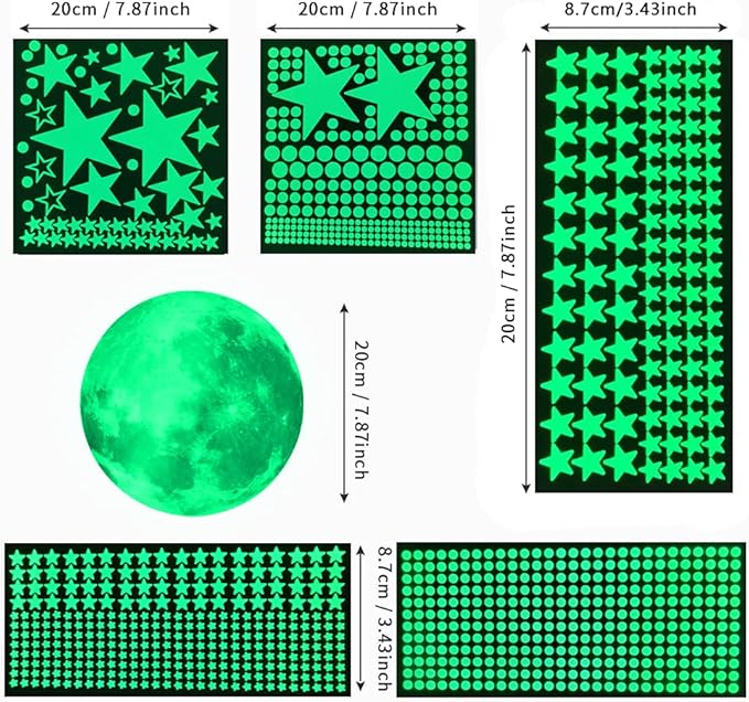 - 【Excessive Quantity】It contains a big moon and 1077 big stars, small stars and dots, which are enough to cover the whole ceiling. It can also be used to spell names, festivals or any pattern you want.