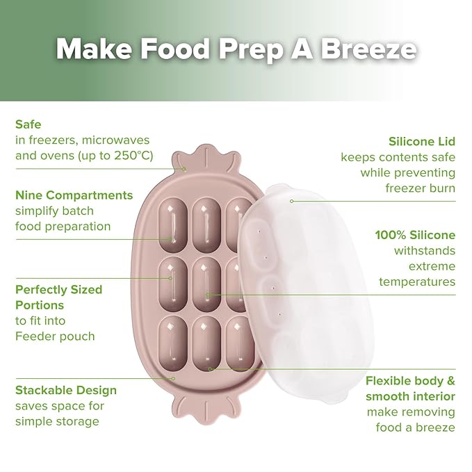 - Perfect Portion Size - 0.3oz portions (9 in total) pop out effortlessly. Just right for creating easy-grab breast milk popsicles that fit perfectly with the Haakaa Fresh Food Feeder and Teether Pacifier.