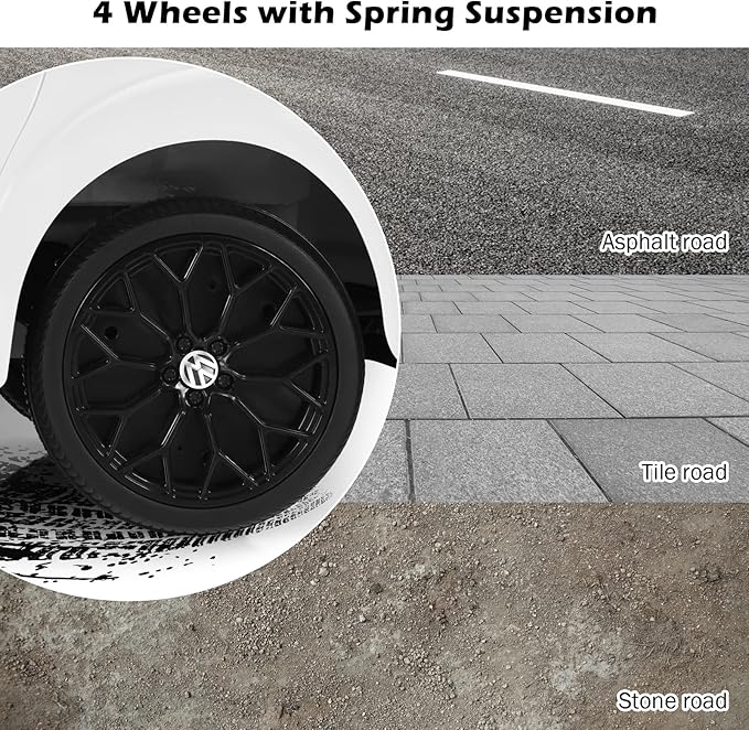 Costzon Ride on Car, 12V Licensed Volkswagen Beetle Battery Powered Vehicle w/Remote Control, Spring Suspension, Lights, USB, Horn, Music, 4 Wheeler for Boy Girl Gift, Electric Car for Kids, White