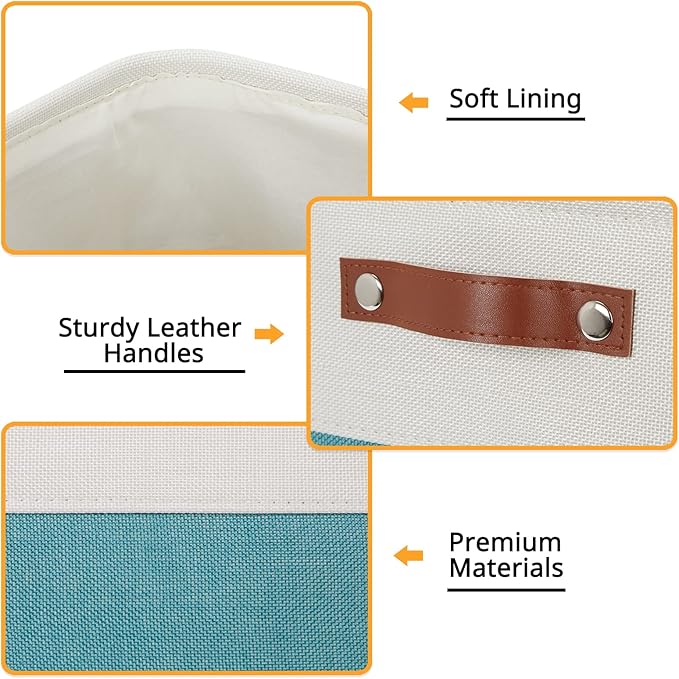 DULLEMELO Square Storage Cubes Baskets for Gifts Empty, 12 inch Cube Stroage Bins Linen Closet Organizers and Storage Baskets for Toy Nursery Shelves Bedroom Storage(4 Pack - 12" White&Teal)
