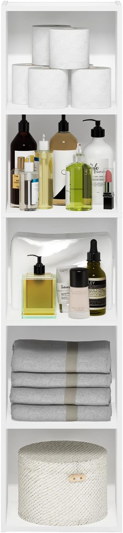 Furinno Luder Bookcase / Book / Storage, 5-Tier Cube, White