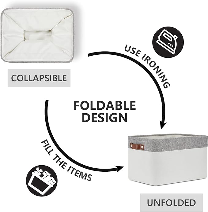 - 【Modern & Decorative】The fabric baskets for storage with neutral colors can match a lot of home styles - keeping your home nice and tidy. Fabric storage baskets for shelves ideal for living room, bedroom, bathrooms, utility room, kids room, Nursery Room, craft room, playroom, baskets for gifts empty, shelf, baskets for closets, dorms, condos, laundry room, toilet, or even in the hallway.