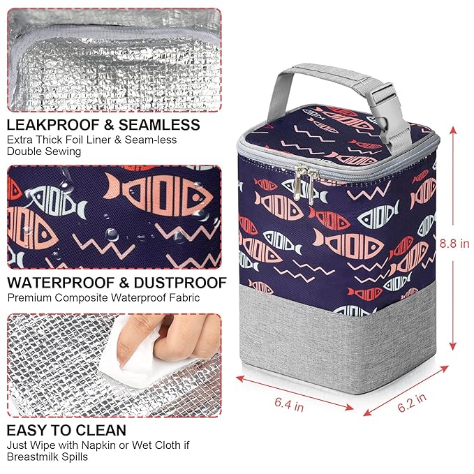 - LARGE CAPACITY: The milk bottle cooler bag's size is 9.05 x 5.9 x 5.9(in)/23 x 16 x 16(cm). Suitable for up to 4 large 8oz baby bottles at once, meet baby daily needs. Perfect cooler bag for transporting breast milk from work to home or leave with daycare. It also can be used as lunch bag.
