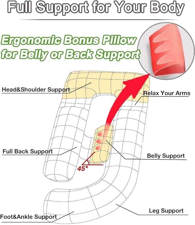 - Adults of all ages and sizes will benefit from our cozy cushion designed to embrace your total body while sleeping on your side, back or stomach