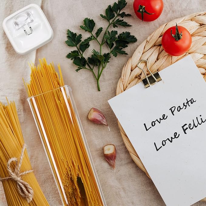 - 3 PIECES TALL SPAGHETTI CONTAINER – ITALIAN PASTA SET : Set includes 3pc 4 inch width REGULAR-Tall sized containers ( 2.0 quart), each size is perfectly calibrated to store common household staples including long noodles, spaghetti, fettuccine, linguine, lasagna, macaroni, farfalle, fusilli, also great for pantry, kitchen counter, makeup, bathroom, office supplies organization, or craft storage.