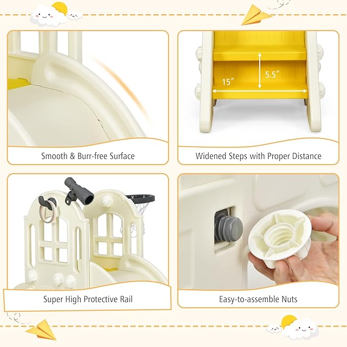 - 【Smooth & Safe Toddler Slide】 The widen and extended slide is scientifically designed with acceleration zone, deceleration zone and buffer zone to let your kids slide smoothly and land safely. Spacious slide provides unconstrained space for your children. In addition, the enhanced handrails on both sides increase extra security.