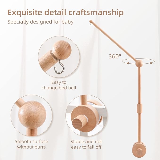 - πΆ HEIRLOOM QUALITY, MINIMALIST DESIGN - Designed with hanging holes on the arm bracket, so it can be used to hang Baby mobile, bell, toy or little plush doll with strings, bring much fun for your baby after hanging decorations.