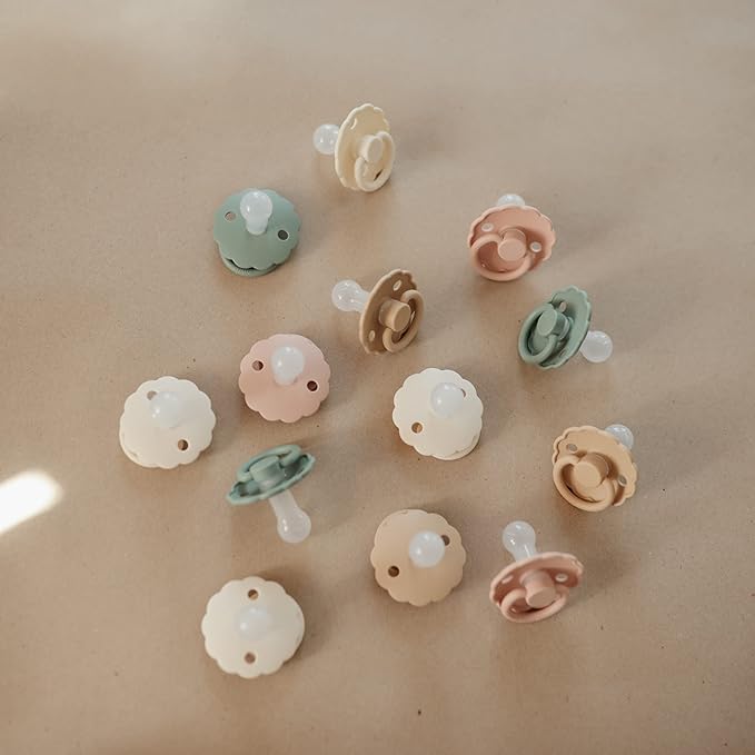 FRIGG Daisy SilkySoft Silicone Baby Pacifier | Made in Denmark | BPA-Free (Cotton Candy/Sandstone, 6-18 Months)