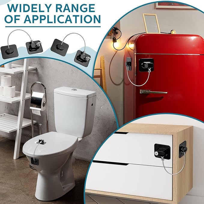 - Reliable and Sturdy Material: refrigerator door lock is made of ABS, stainless steel wire, zinc alloy, backed with adhesive backing, strong and reliable; The surface of the multi-strand steel wire is covered with a protective layer, smooth surface, not easy to fall off and does not scratch hands