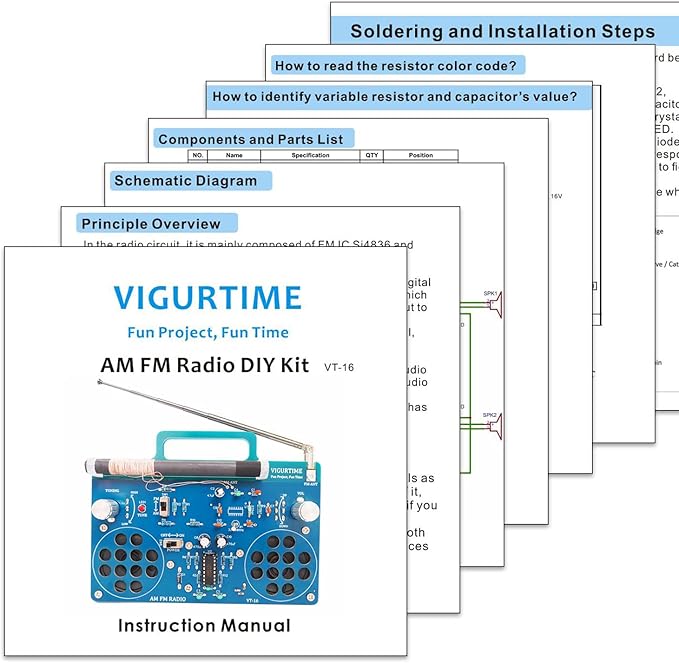 - A Great STEAM Project - Complete parts kit and full color instruction manual, let you or your kids can learn how to solder, get familiar with more components, learn radio schematics, and more. Not only is it a great soldering project kit, it's also a really cool radio kit when done!
