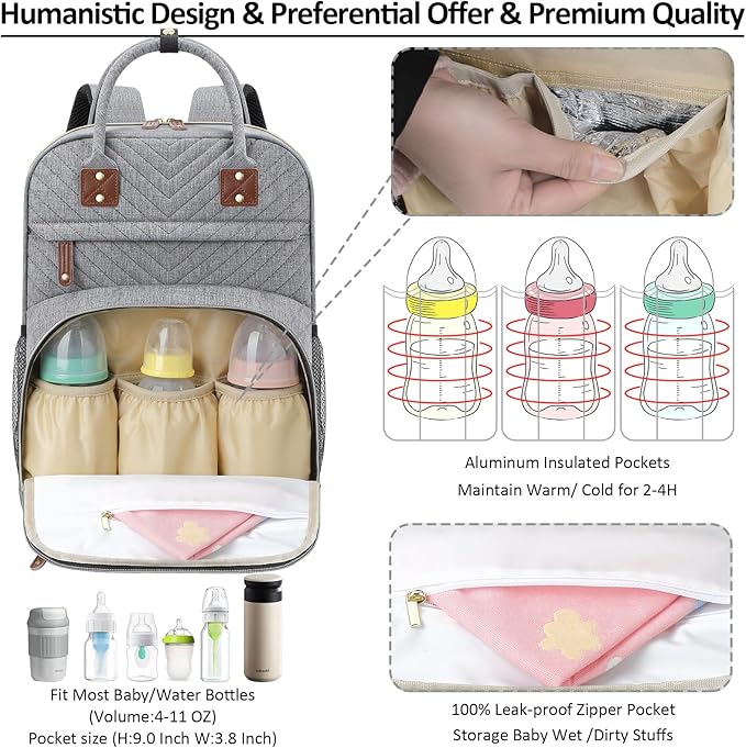 - Impressed With Overall: Tenot baby backpack diaper bag only 1.54 lbs, but comes with 10 pockets and spacious to keep diapers, breast pump, wipes, formula, toys, cell phones, baby bottles, books, laptop, clothes well organized; The quality is top-notch, strong zipper, sturdy stitching, detachable stroller straps; Especially has 3 insulated bottle pockets to keep warm/cold 2-4 H; This makes diaper bag purse very durable and will not easily fall apart; A good bet baby boy baby girl diaper bag