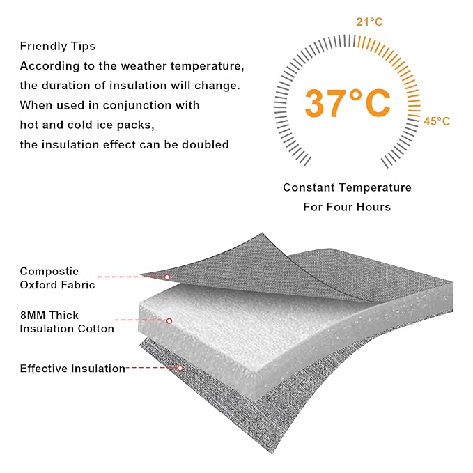 - KEEP COOL OR WARM EFFECTLLY: Insulated lining can keep bottles cool or warm, will help your food or drinks keep the optimal temperature.
