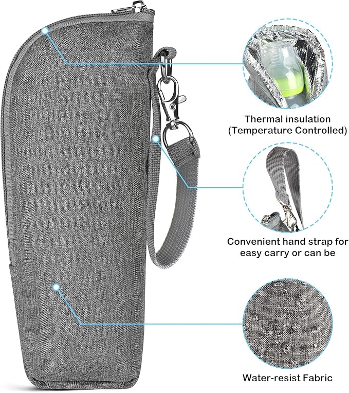 • Size: The milk bottle storage bag measures about 8x7x22cm/3.15x2.76x8.66in, universal to most milk bottle.