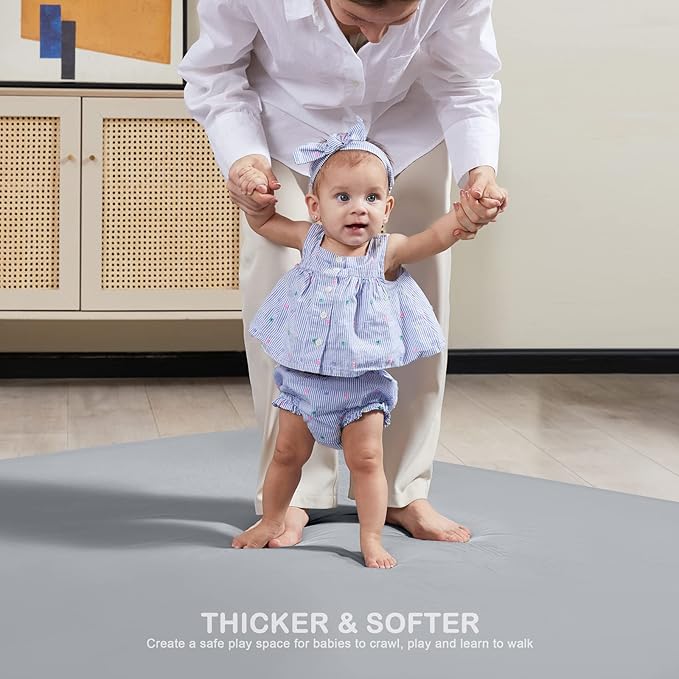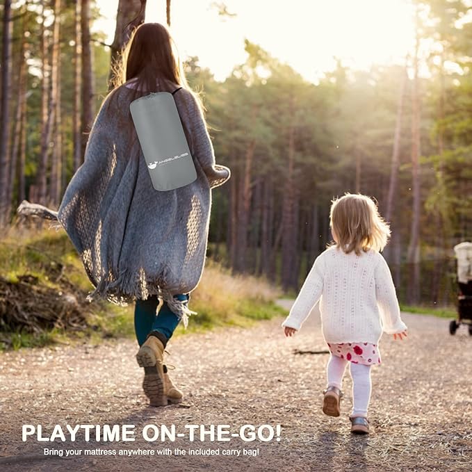 - THICKER & SOFTER - The baby play mat can be up to 1.18 inches thick when fully inflated, high-resilience foam filling provides extra comfort for your baby's crawling, rolling, sitting up & first steps.