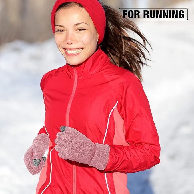 Geyoga 2 Pairs Women's Winter Touch Screen Gloves Soft Warm Fleece Lined Knit Elastic Cuff Winter Texting Gloves